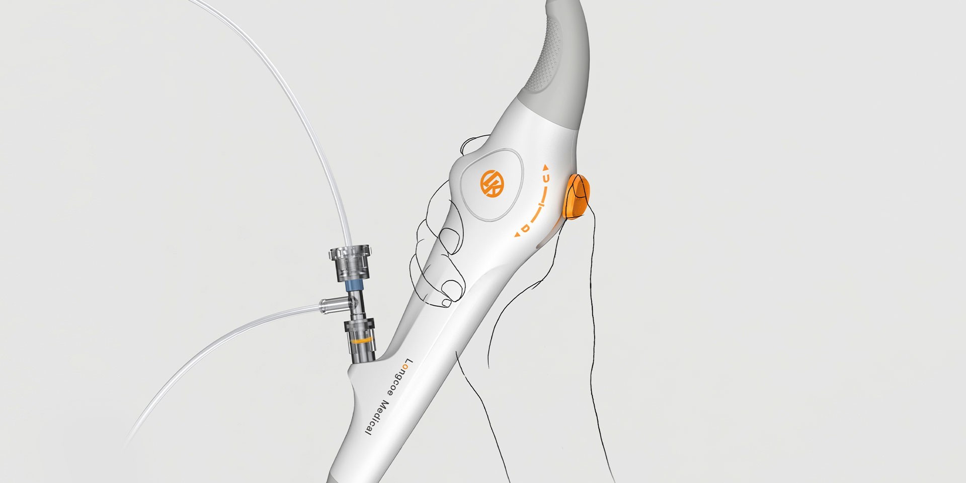 內窺鏡設備由手持式內窺鏡和顯示屏兩部分組成,手柄與圖像處理器協(xié)同工作;充分考慮人機工程學,同時適用兩種握持方式,撥動旋鈕可控制插入管狀態(tài),尾端可旋轉,便于術者靈活切換手術操作姿勢。